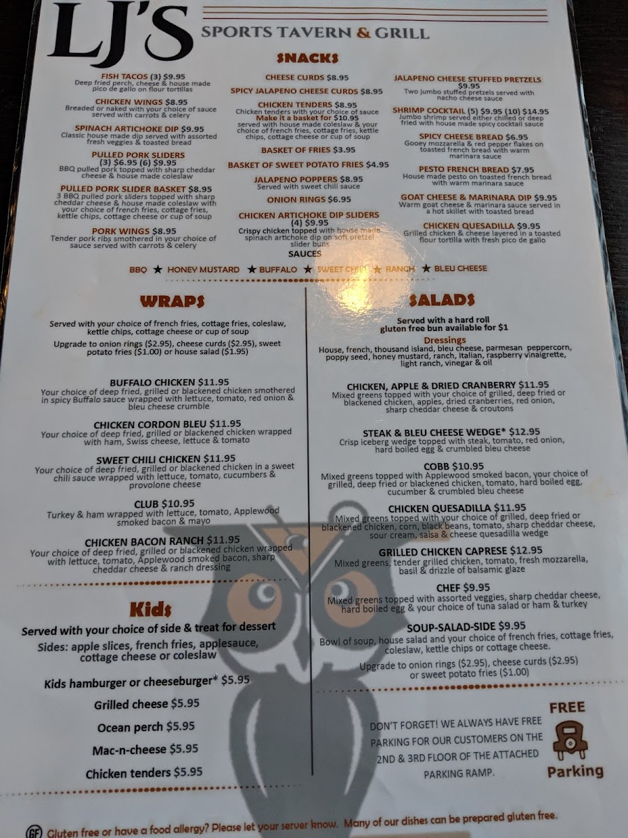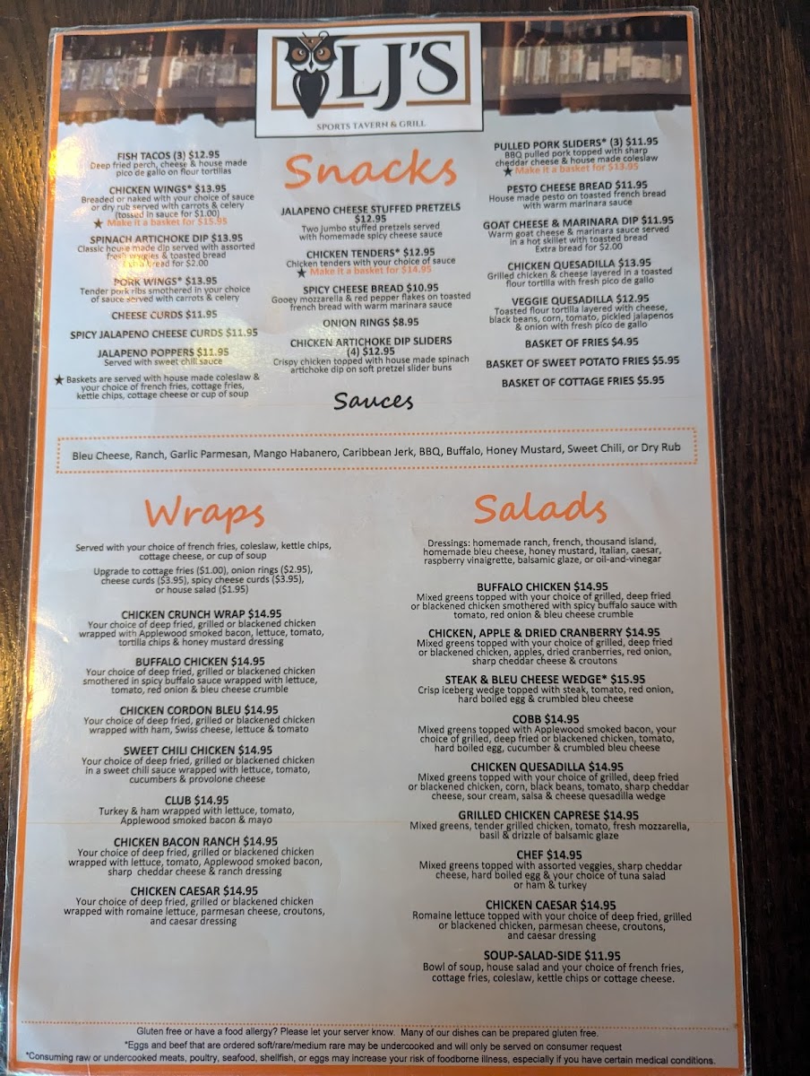The menu at LJ's Sports Tavern & Grill offers a straightforward, casual dining experience tailored for fans and locals alike. It strikes a balance between classic sports bar favorites and comforting, uncomplicated dishes that suit a laid-back setting filled with the buzz of live games and social gatherings.